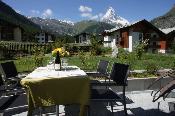 Wonderful two bedroom apartment of 86m2, large south-facing terrace with direct access to the garden and stunning Matterhorn views. Fully equipped kitchen with coffee machine, oven/steamer, dishwasher, Raclette and Fondueset. Living room with radio, cable TV and WiFi. 2 bedrooms with TVs and two bathrooms with shower/toilet and hairdryer.